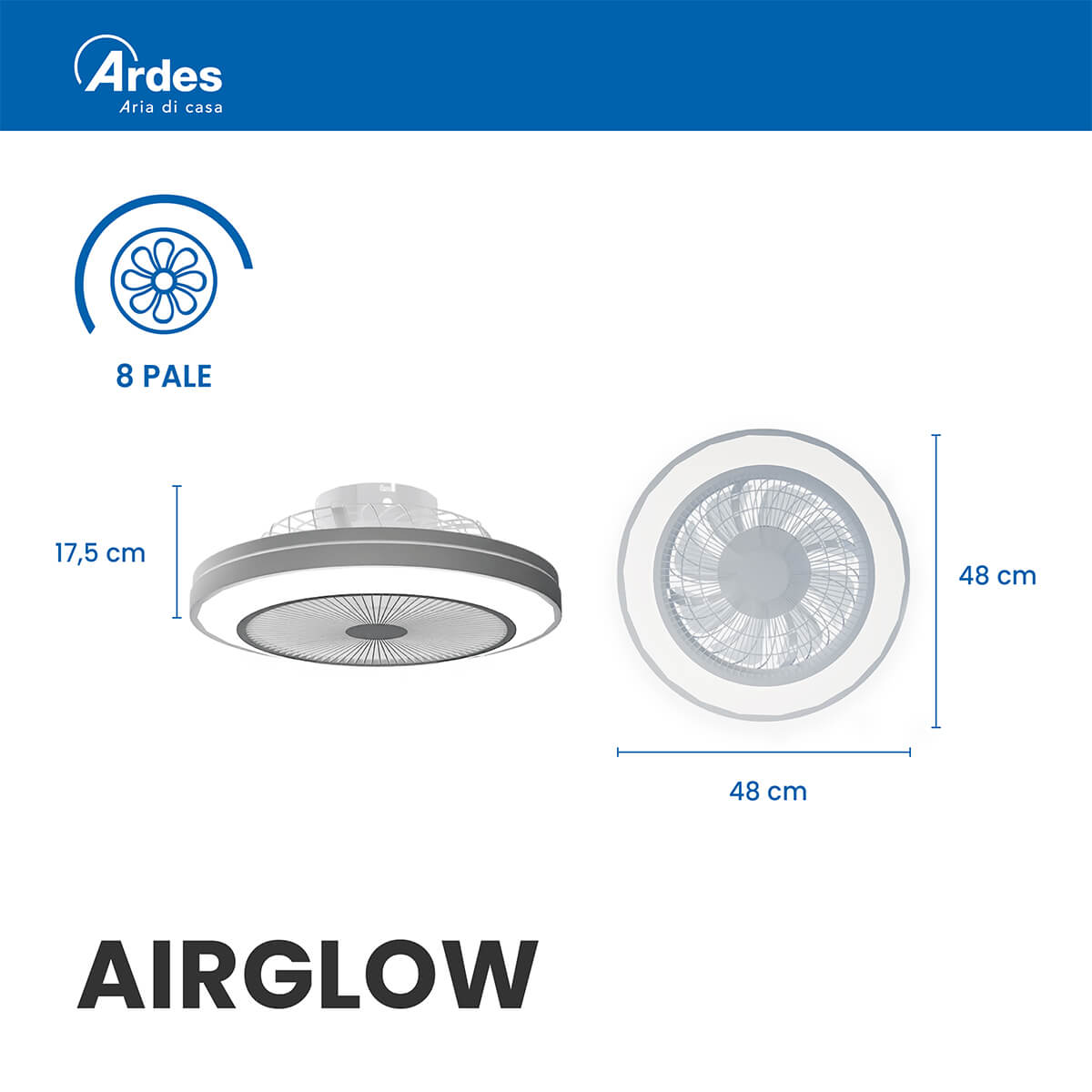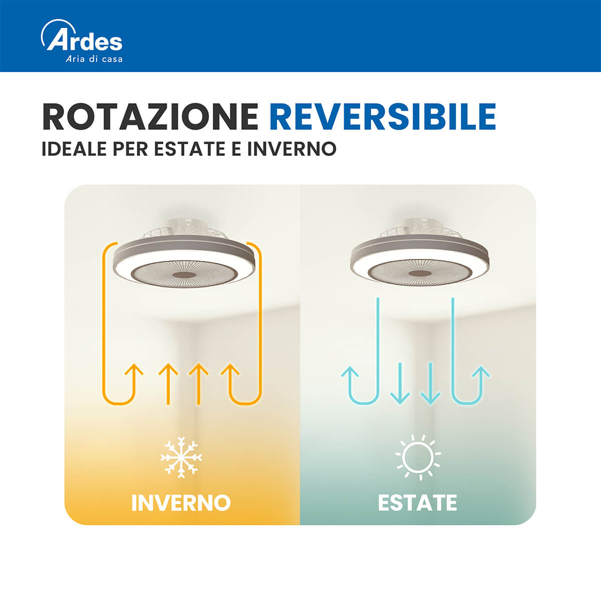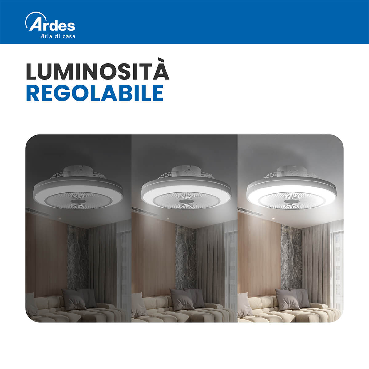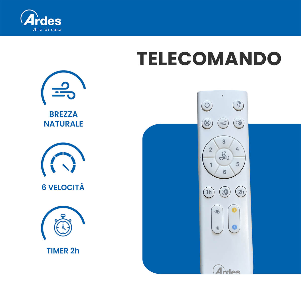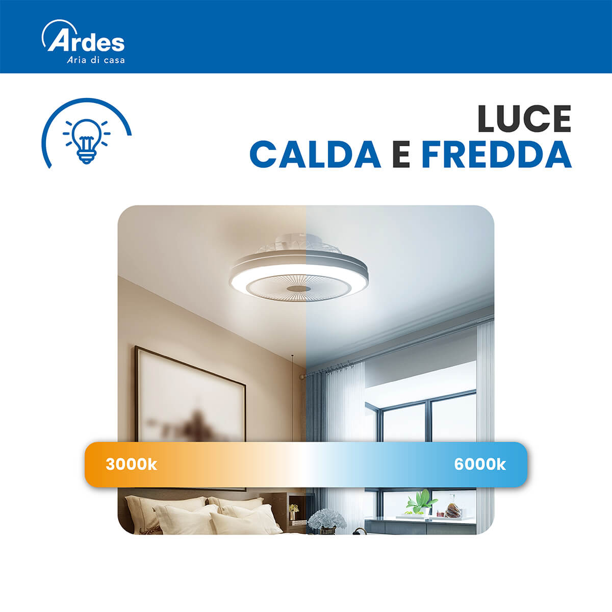 Ventilatore da soffitto Ø 48 cm. Motore brushless DC. 6 velocità. Luce LED 3.200 Lumen. Temperatura di colore regolabile da luce calda 3.000K a luce fredda 6.000K. 3 CCT preimpostate. Luminosità regolabile (dimmer integrato). Rotazione reversibile (estate/inverno). Funzione brezza naturale. Timer 1h/2h. Installazione semplice. Telecomando Scarica il Manuale Scarica la Scheda Scarica da dichiarazione UE