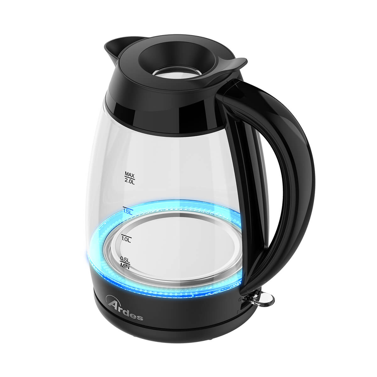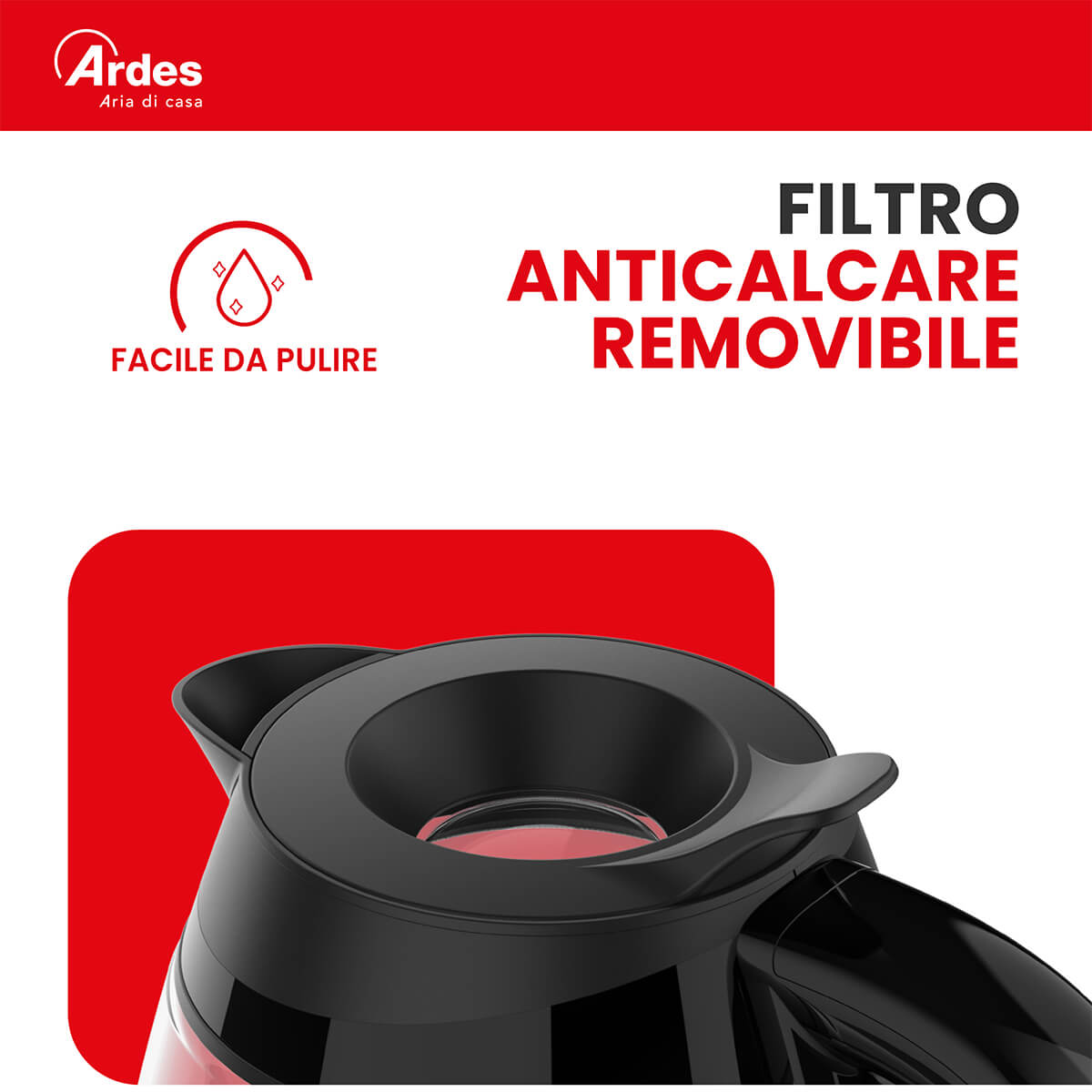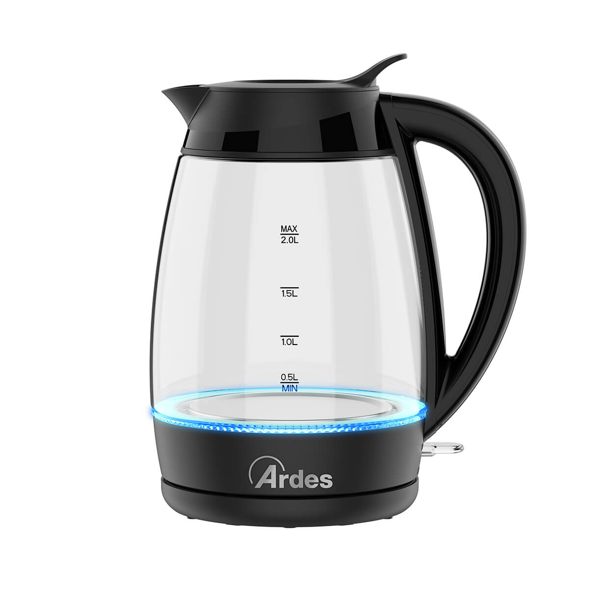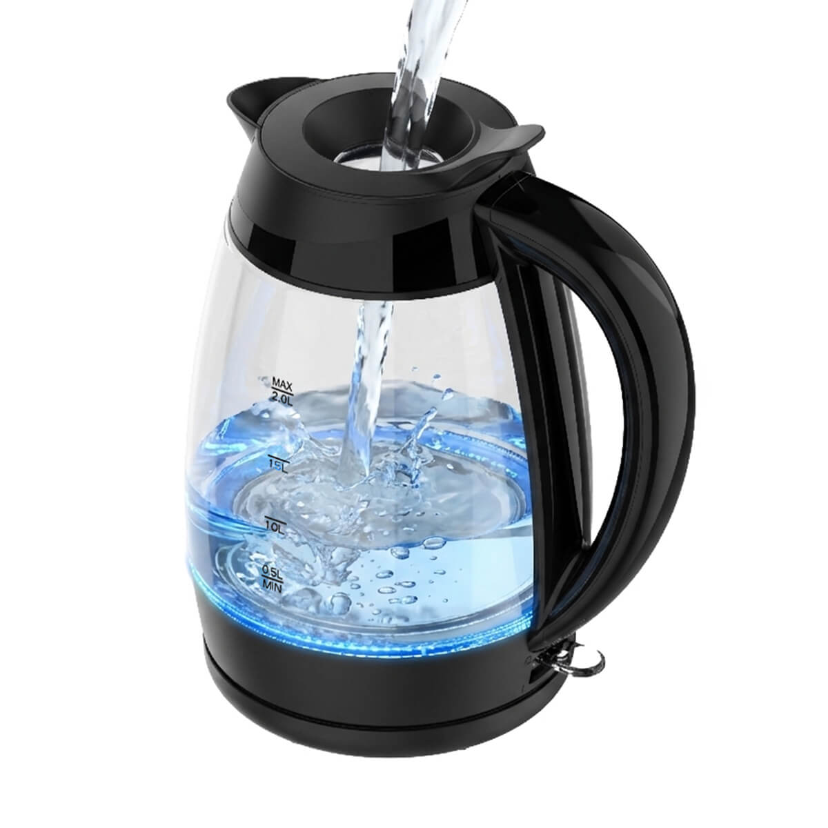 Bollitore elettrico in vetro con elegante e intuitiva spia luminosa a LED blu. Capacità 2L 8 tazze. Il bollitore si spegne automaticamente quando lacqua raggiunge lebollizione, quando viene sollevato dalla base o quando lacqua non è sufficiente. Filtro anticalcare, removibile e lavabile. Facile riempimento diretto dal coperchio grazie allinnovativo sistema Easy Drop. Lampia apertura semplifica la pulizia. Il beccuccio versa lacqua senza gocciolare e ha un bordo liscio. Base girevole a 360° con avvolgicavo.