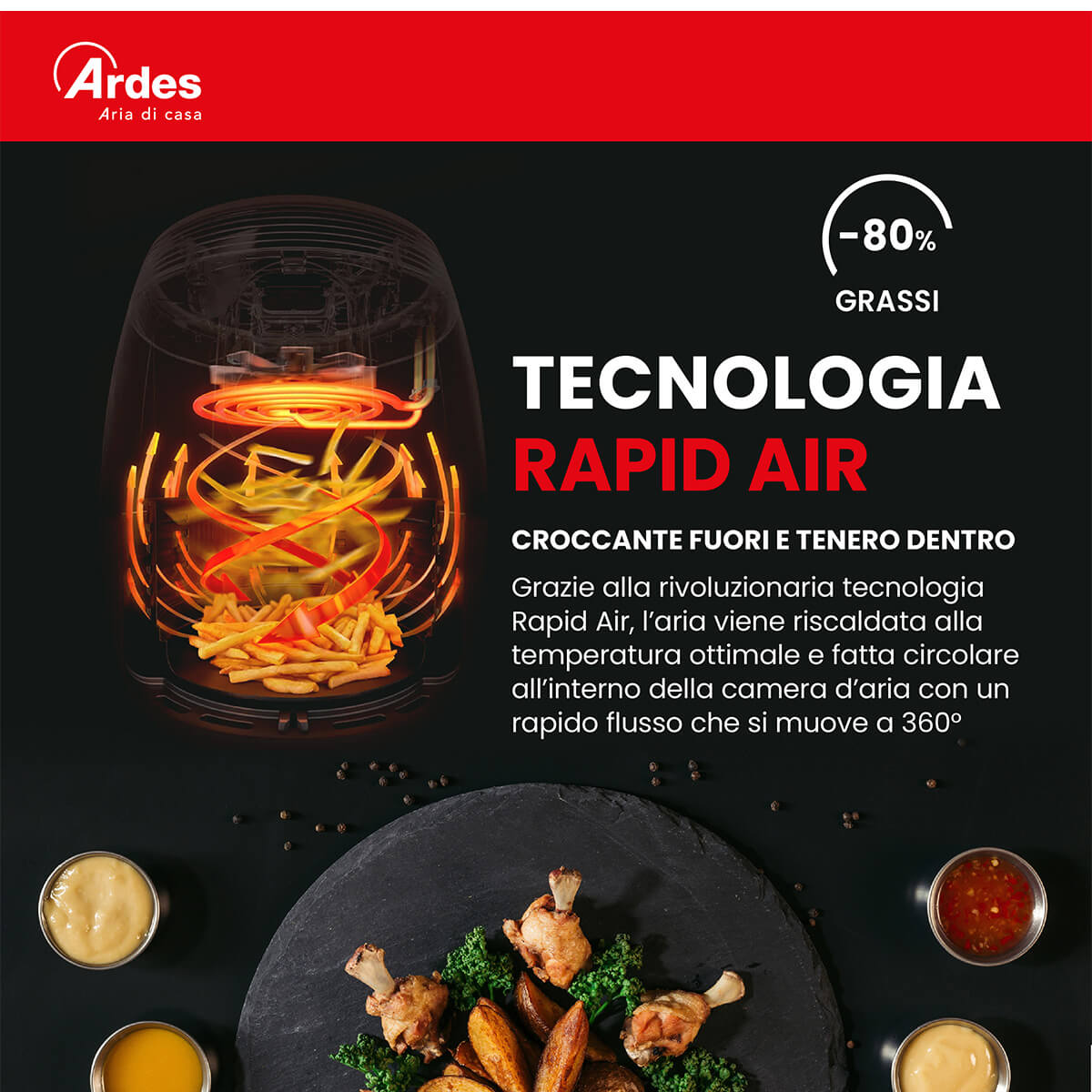 Quello che si può friggere o cuocere in forno, si può cucinare anche con Friggisana Supreme 6,5L. La finestra e la luce interna permettono di monitorare la cottura del cibo senza aprire il cestello. Cottura uniforme e nessun bisogno di scuotere il cibo grazie alla doppia resistenza. La tecnologia Rapid Air permette di generare un flusso di aria calda in grado di cuocere uniformemente e velocemente un gran numero di piatti. Può cuocere senza olio o con l80% di olio in meno rispetto a una friggitrice tradizionale. Minor consumo dolio, minori odori in cucina. Facile da pulire, grazie alla griglia e al contenitore antiaderenti. Griglia 22 x 23,5 cm. Pareti interne in acciaio. Display digitale touch, 12 programmi di cottura preimpostati. Temperatura regolabile 80200 °C. Timer 60 minuti.