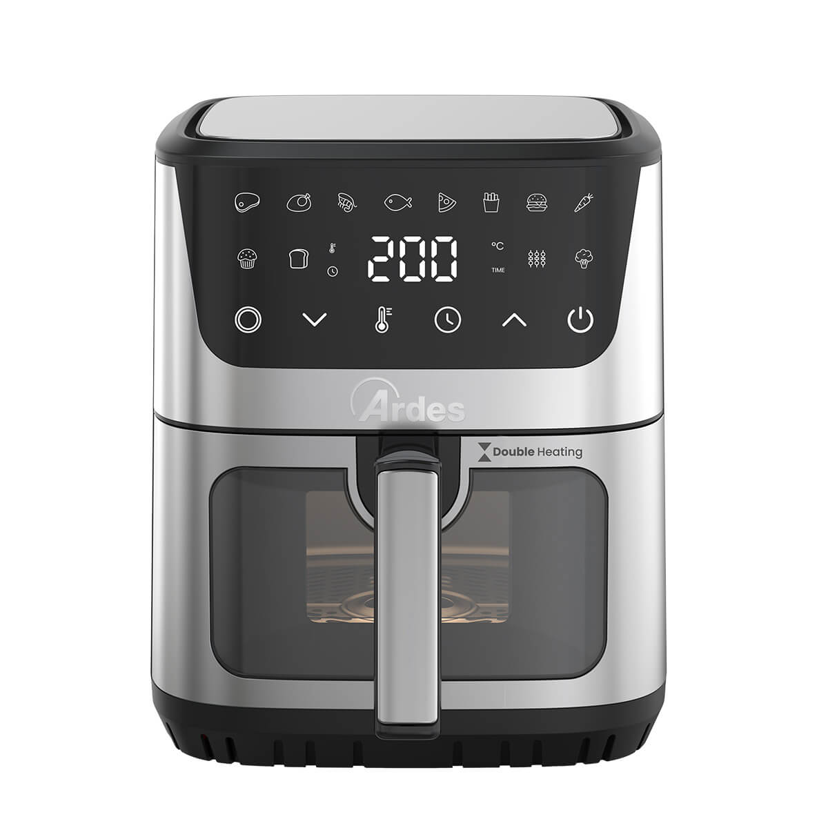 Friggitrice ad aria con doppia resistenza. 12 programmi preimpostati. Finestra e luce interna. Capacità 6,5L. Potenza 1500W.