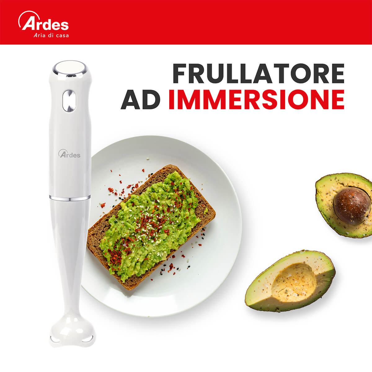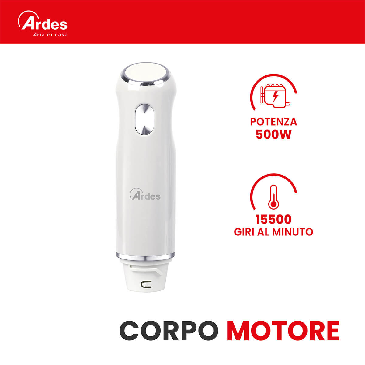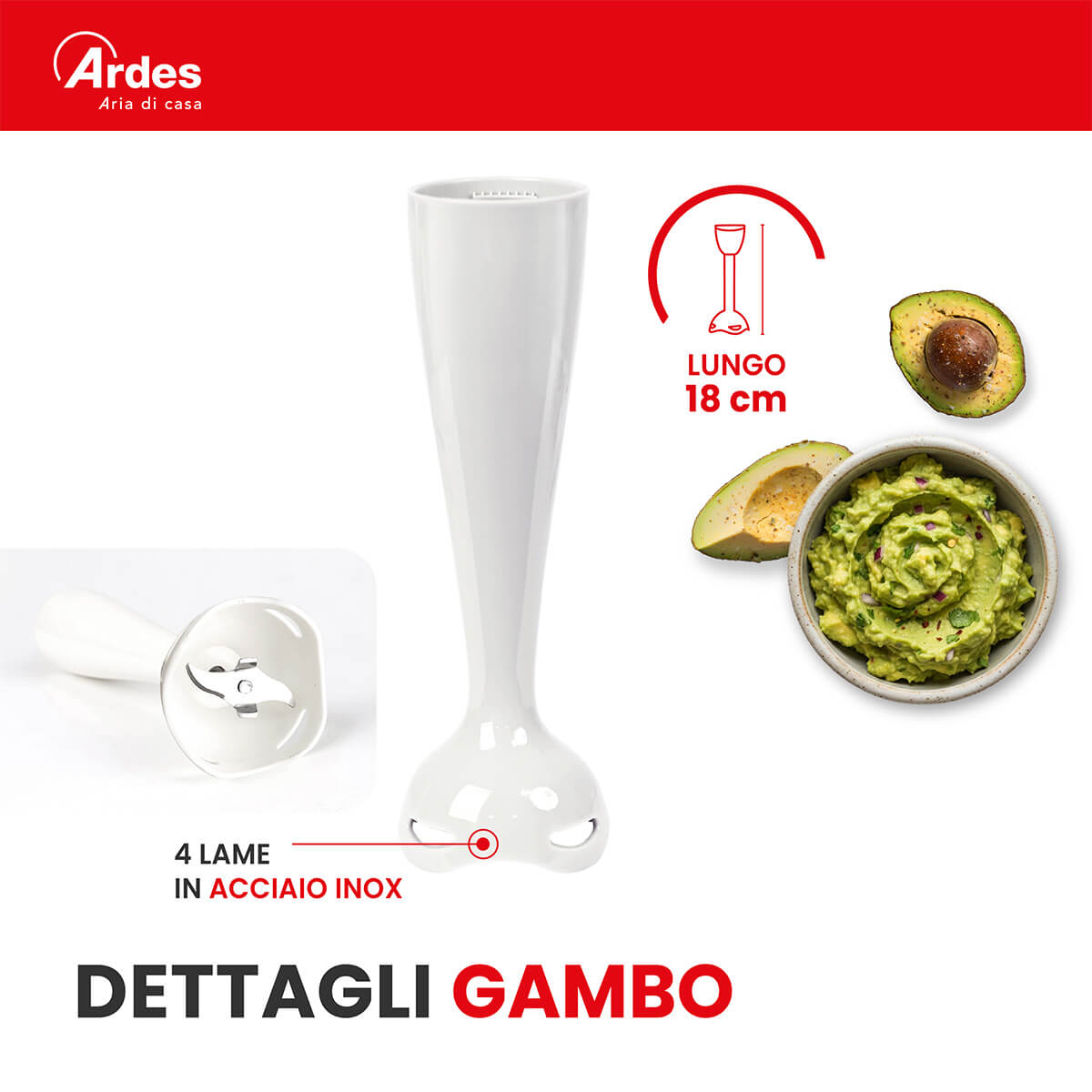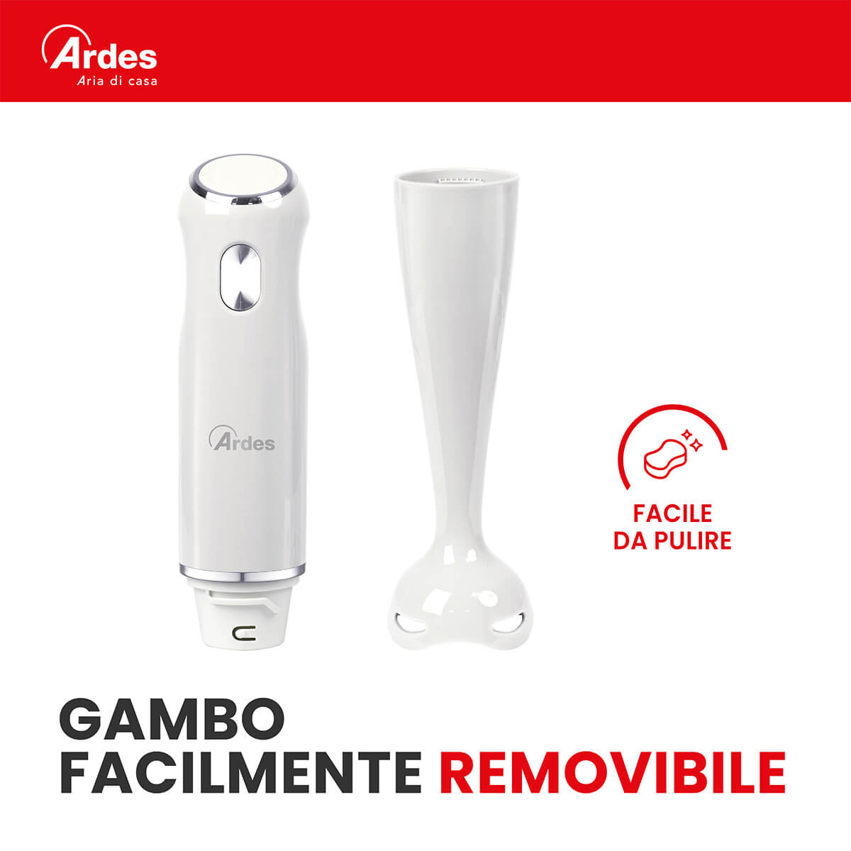 Frullatore ad immersione con gambo lungo 18 cm. Smontabile, facile da pulire. Gruppo lame in acciaio INOX con 4 lame. 15500 giri al minuto. Impugnatura ergonomica. Scarica il Manuale Scarica la Scheda
