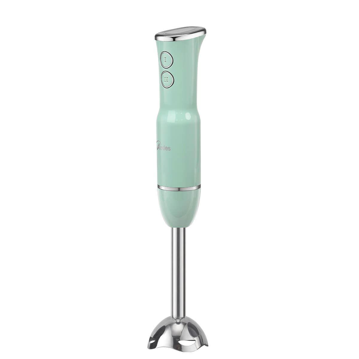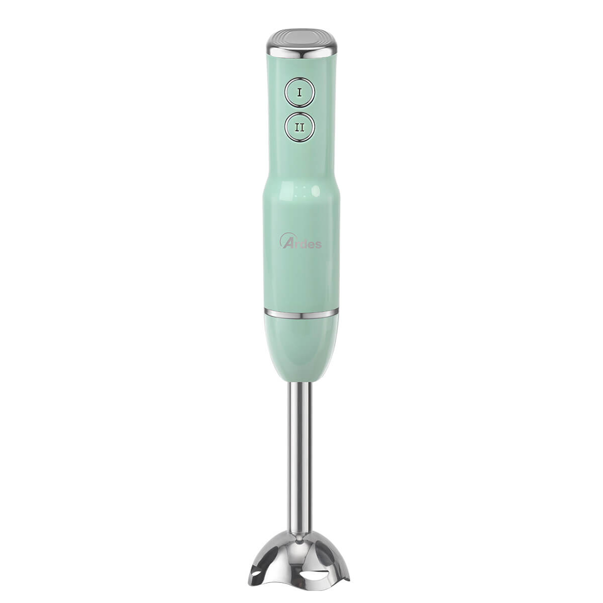 Frullatore ad immersione con gambo in acciaio INOX lungo 18 cm. 4 lame in acciaio INOX. 2 velocità di funzionamento.